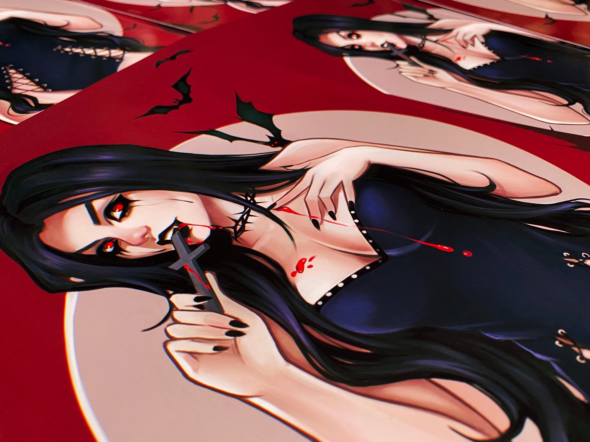 Glossy print with my drawing Maroon sunset