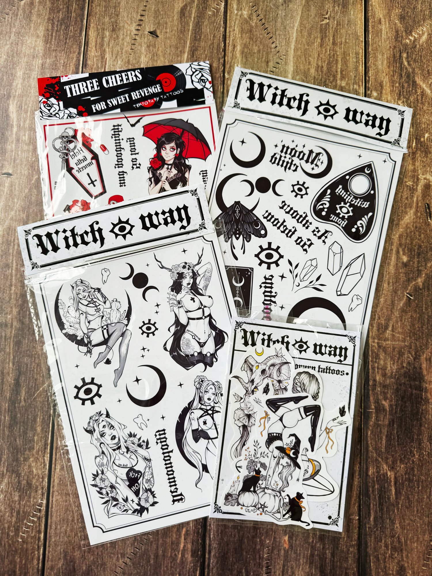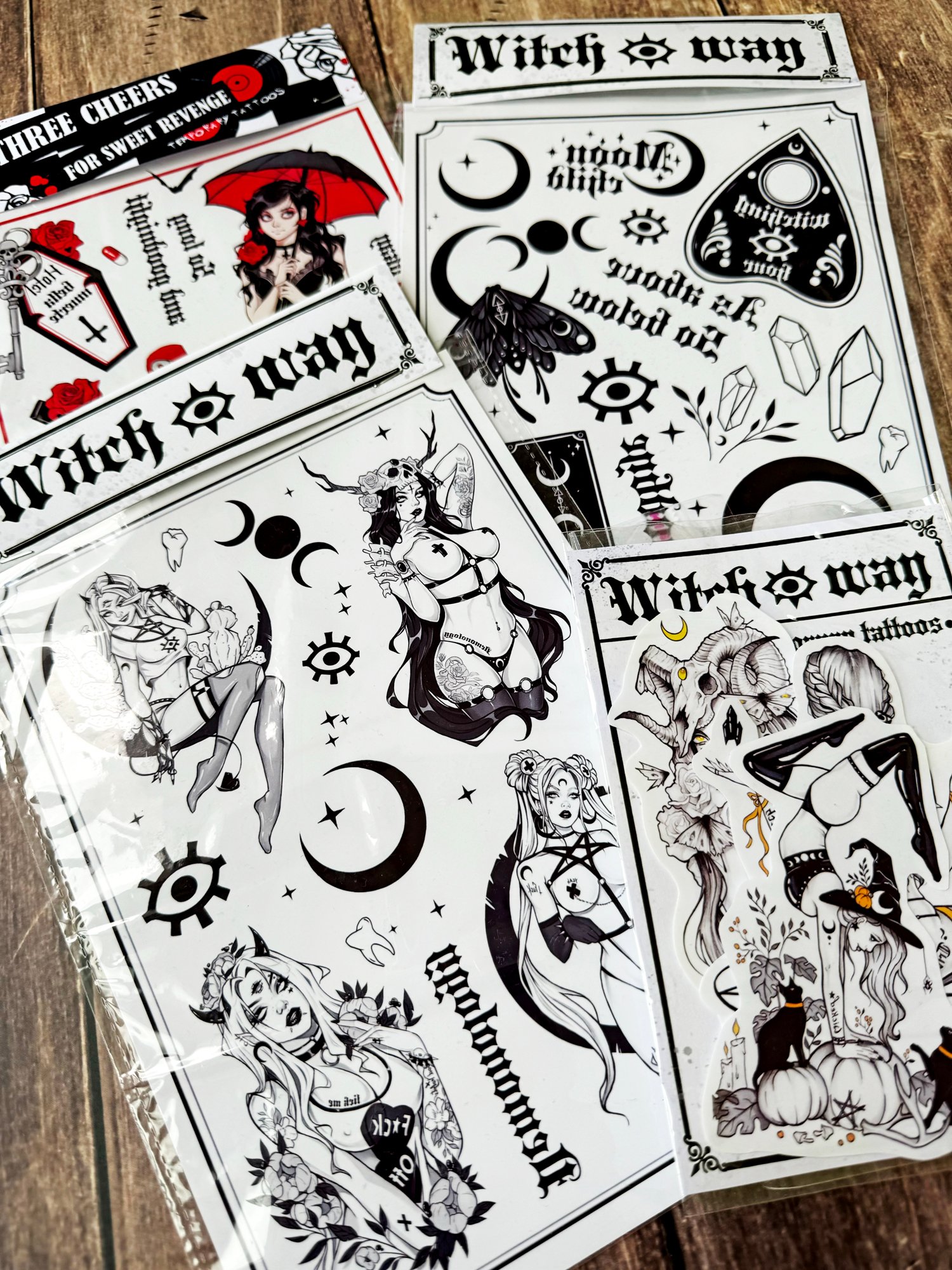 Tattoos have been printed onto non-toxic, skin-safe temporary tattoo paper.