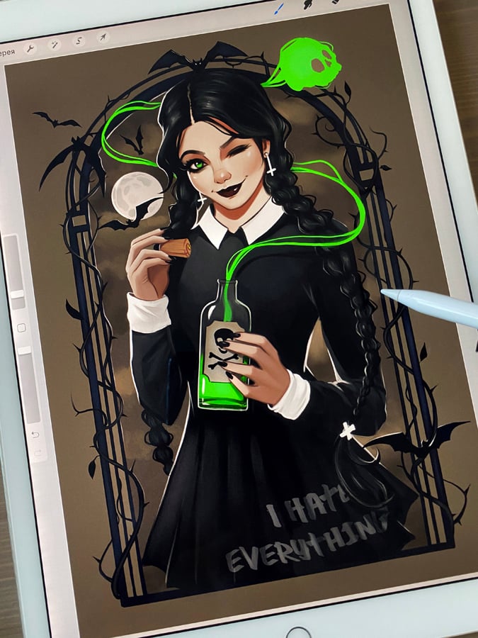 Glossy print with my drawing Wednesday